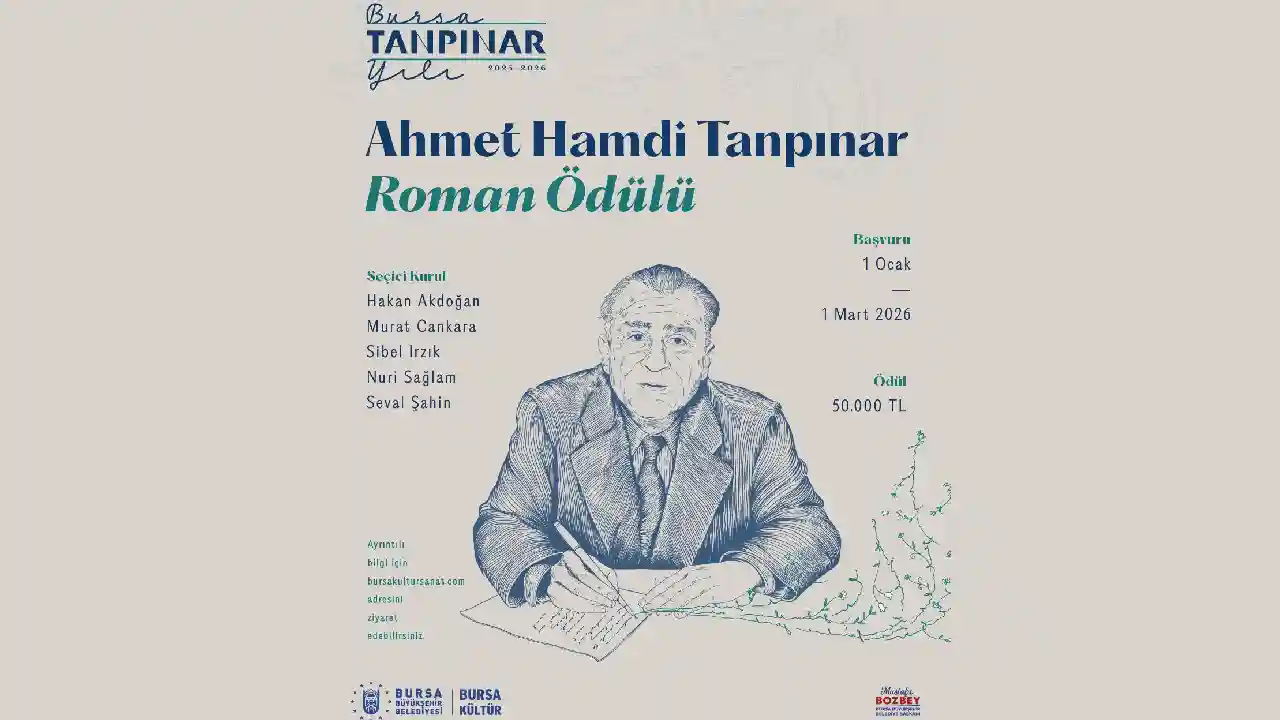 Edebiyatımızın ölümsüz isimlerinden Tanpınar’ın düşünce ve estetik dünyasından ilham alan eserlerin değerlendirileceği Ahmet Hamdi Tanpınar Roman Ödülü için başvurular başladı! Edebiyat dünyasına yeni ve nitelikli eserler kazandırmayı hedefleyen Ahmet Hamdi Tanpınar Roman Ödülü, Bursa Büyükşehir Belediyesi tarafından “Bursa Tanpınar Yılı” kapsamında düzenleniyor. 1 Mart 2026 tarihine kadar devam eden başvurunun koşullarına ve ödülle ilgili ayrıntılı bilgilere bursakultursanat.com adresinden ulaşılabilir.